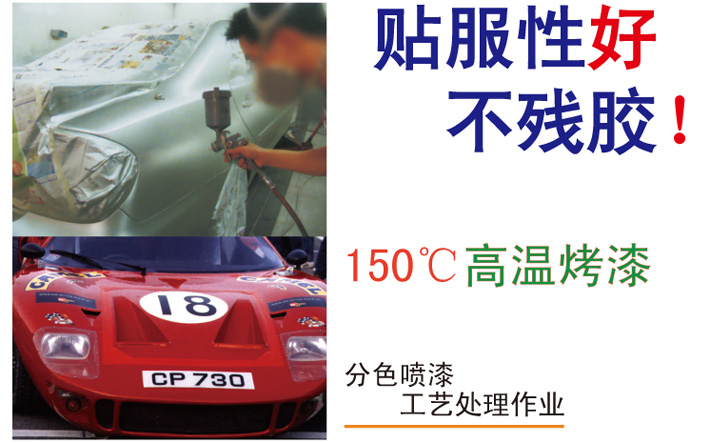適用于中溫產品 漆、烤漆涂裝、皮革、制鞋上油的遮蔽作業;電子行業及線路板印刷工藝、高溫噴涂的遮蔽保護。